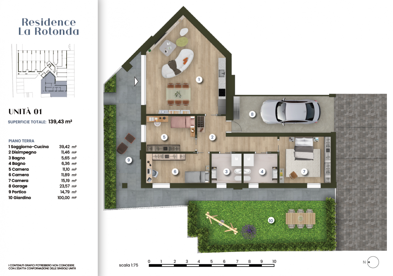 Ciascuna unità abitative è dotata di garage e posto auto fuori terra.